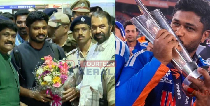 തിരുവനന്തപുരം : ടി20 ലോകകപ്പ് കിരീട വിജയത്തിന് ശേഷം ഇന്ത്യൻ താരം സഞ്ജു സാംസൺ ജന്മനാട്ടിൽ തിരിച്ചെത്തി. തിരുവനന്തപുരം വിമാനത്താവളത്തിൽ ഭാര്യ ചാരുലതയ്ക്കൊപ്പമെത്തിയ സഞ്ജുവിനെ മന്ത്രി വി. ശിവൻകുട്ടി, എ.എ. റഹീം എം.പി എന്നിവർ ചേർന്ന് സ്വീകരിച്ചു.