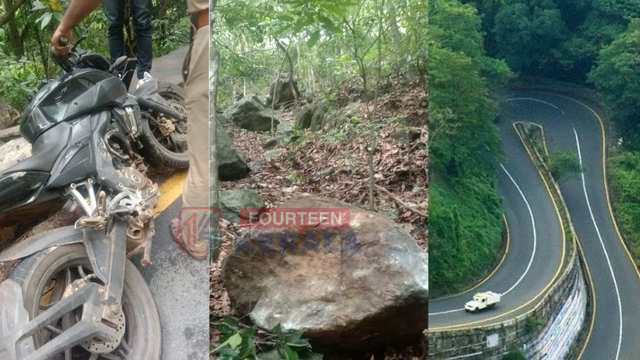 താമരശ്ശേരി ചുരത്തില് ബൈക്ക് യാത്രികരുടെ മേല് പാറക്കല്ല് അടര്ന്നുവീണു; രണ്ട് പേര്ക്ക് പരുക്ക്