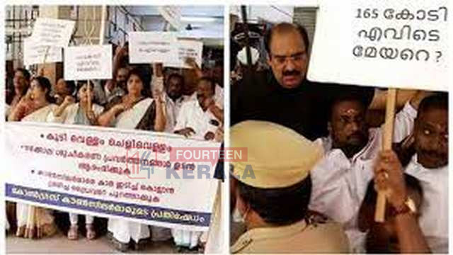 കുടിവെള്ളമായി കലക്കവെള്ളം വിതരണം ചെയ്യുന്നുവെന്ന് ആരോപണം; തൃശ്ശൂർ കോർപ്പറേഷനിൽ യുഡിഎഫ് ഉപരോധം