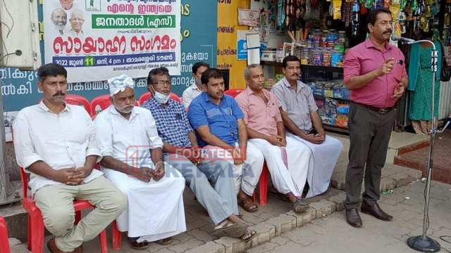 ജനതാദള്‍(എസ്) ജില്ലാ വൈസ് പ്രസിഡന്റ് അഡ്വ. ബെന്നി ജോസഫ് സായാഹ്ന സംഗമം ഉദ്ഘാനം ചെയ്തു. നിയോജക മണ്ഡലം പ്രസിഡന്റ് കെ വി സെബാസ്റ്റ്യന്‍ അധ്യക്ഷത വഹിച്ചു. ജാബിര്‍ പടനിലം മുഖ്യ പ്രഭാഷണം നടത്തി. പി സി എ റഹീം, സെബാസ്റ്റ്യന്‍ കല്ലിടുക്കില്‍, പി സി മോയിന്‍ കുട്ടി, ഉസ്മാന്‍ അണ്ടോണ, പി ടി സലാം, ജസീര്‍ വട്ടക്കൊരു എന്നിവര്‍ സംസാരിച്ചു.