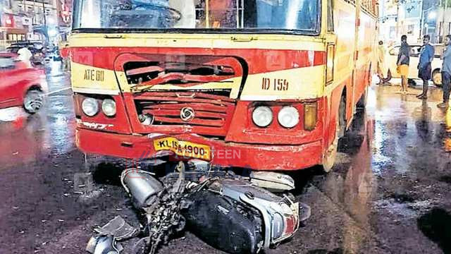 രാത്രി 11നാണു അപകടം. കോഴിക്കോട് നിന്നു കുമളിയിലേക്കു പോകുകയായിരുന്ന കെഎസ്ആർടിസി ബസ് കൊണ്ടോട്ടി ഭാഗത്തു നിന്നു വന്ന സ്കൂട്ടറിലാണ് ഇടിച്ചത്. സ്കൂട്ടർ ബസിനുള്ളിൽ കുടുങ്ങി.