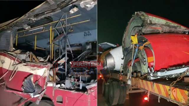 ട്രെയിലറില് കൊണ്ടുപോയ വിമാനത്തിന്റെ ചിറക് കെഎസ്ആര്ടിസി ബസിലിടിച്ചു; നിരവധി പേര്ക്ക് പരുക്ക്