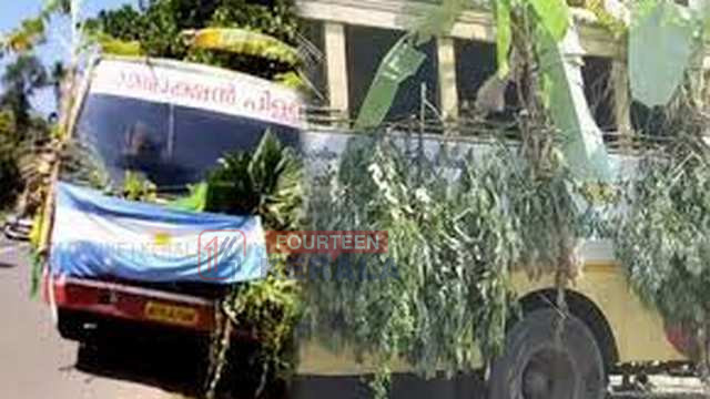 കോതമംഗലം ഡിപ്പോയിലെ കെഎസ്ആർടിസി ബസാണ് നെല്ലിക്കുഴിയിൽ നിന്ന് അടിമാലി ഇരുമ്പുപാലത്തേക്കാണ് കല്യാണം ഓട്ടം വിളിച്ചത്. കല്യാണച്ചെറുക്കനൊപ്പം ബസിനെയും ഒരുക്കിയിറക്കിയത് സകലരും ഞെട്ടിയത്. സിനിമയിലേതുപോലെ കെഎസ്ആർടിസി ബസിന് ചുറ്റും മരച്ചില്ലകൾ പുറത്തേക്ക് തള്ളി നൽക്കും വിധം ബസിൽ കെട്ടിവച്ചിരുന്നു.