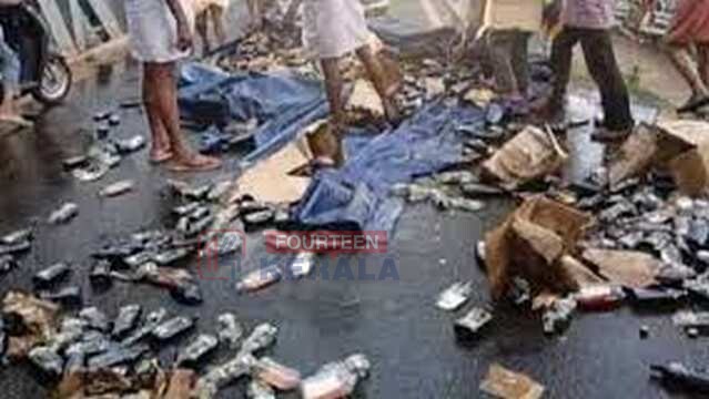 ഫറോക്ക് പഴയപാലത്തില് മദ്യലോറി അപകടത്തില്പ്പെട്ട് നഷ്ടപ്പെട്ടത് 97 പെട്ടി മദ്യം; പൊലീസിന് ലഭിച്ചത് 40 പെട്ടി മാത്രം