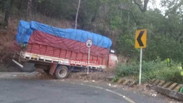 ലോറി കൊക്കയിലേക്ക് പതിക്കാത്തതിനാല്‍ വന്‍ ദുരന്തം ഒഴിവായി. പുലര്‍ച്ചെ രണ്ടു മണിയോടെയാണ് സംഭവം. ലോറി ഡ്രൈവര്‍ പരിക്കേല്‍ക്കാതെ രക്ഷപ്പെട്ടു.