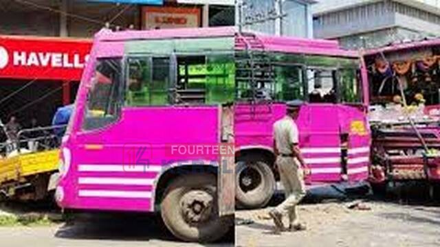 ബ​സ് ഇ​ടി​ച്ച​തി​ന്റെ ആ​ഘാ​ത​ത്തി​ൽ നി​യ​ന്ത്ര​ണം വി​ട്ട ഗു​ഡ്സ് ഓ​ട്ടോ എ​തി​ർ​വ​ശ​ത്തു​ള്ള കോം​പ്ലക്സി​ന്റെ കൈ​വ​രി​യി​ൽ ഇ​ടി​ച്ച് നി​ൽ​ക്കു​ക​യാ​യി​രു​ന്നു.