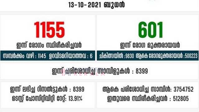 ജില്ലയിലെ കോവിഡ് ആശുപത്രികള്, എഫ്.എല്.ടി.സികള്, വീടുകള് എന്നിവിടങ്ങളില് ചികിത്സയിലായിരുന്ന 1065 പേര് കൂടി രോഗമുക്തി നേടി. 7.15% ശതമാനമാണ് ടെസ്റ്റ് പോസിറ്റിവിറ്റി നിരക്ക്. രോഗം സ്ഥിരീകരിച്ച് 9315 കോഴിക്കോട് സ്വദേശികളാണ് ചികിത്സയിലുള്ളത്. പുതുതായി വന്ന 1827 പേർ ഉൾപ്പടെ 41191 പേർ ഇപ്പോൾ നിരീക്ഷണത്തിലുണ്ട് . ഇതുവരെ 1100383 പേർ നിരീക്ഷണം പൂർത്തിയാക്കി. 2760 മരണങ്ങളാണ് ഇതുവരെ കോവിഡ് മൂലമെന്ന് റിപ്പോർട്ട് ചെയ്യപ്പെട്ടിട്ടുള്ളത്.