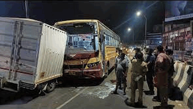 എടപ്പാള് മേല്പ്പാലത്തില് ബസും പിക്കപ്പ് വാനും കൂട്ടിയിടിച്ച് ഒരാള് മരിച്ചു; പത്തുപേര്ക്ക് പരിക്ക്