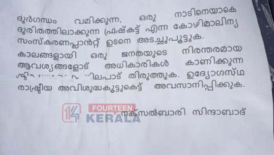 താമരശ്ശേരി : അമ്പായത്തോട് ഭാഗത്ത് വ്യാപകമായി നക്സൽ ബാരിയുടെ പേരിൽ പോസ്റ്ററുകൾ. അമ്പായത്തോടിന് സമീപം പ്രവർത്തിക്കുന്ന ഫ്രഷ്ക്കട്ട് എന്ന അറവു മാലിന്യ സംസ്കരണ ഫാക്ടറിക്കെതിരെയാണ് നക്സൽ ബാരിയുടെ…