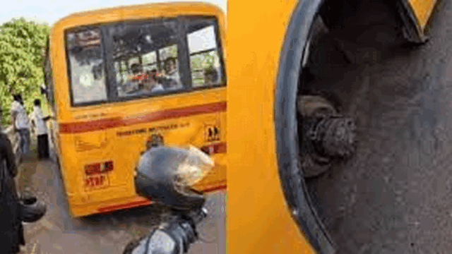 കുട്ടികളുമായി പോകവെ സ്കൂൾ ബസിന്റെ പിൻചക്രങ്ങൾ ഊരിത്തെറിച്ചു