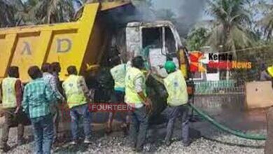 കോഴിക്കോട് ദേശീയ പാതയിൽ ഓടിക്കൊണ്ടിരുന്ന ലോറിക്ക് തീ പിടിച്ചു