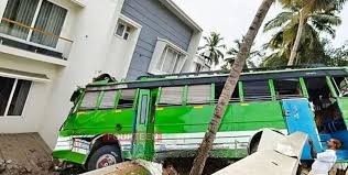കെ.എസ്.ആർ.ടി.സി ബസ് പിന്നോട്ട് ഉരുണ്ട് മതിൽ ഇടിച്ചു തകർത്തു